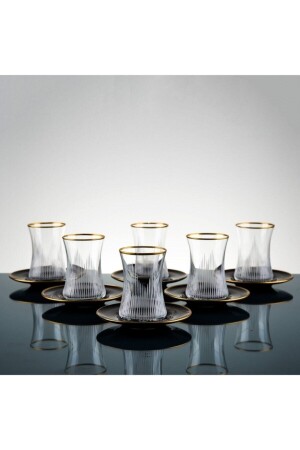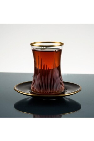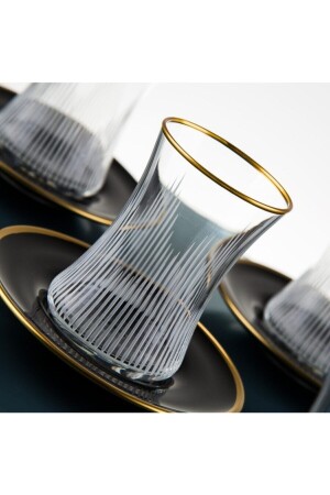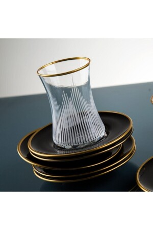 MNZ-الفخام المدخن اللون الأسود مجموعة الشاي - 12 قطعة كوب الشاي مجموعة fumeçaytakimi