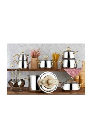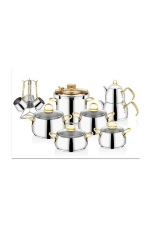 MNZ-Akasya ذهب 18 قطعة طازجة مجموعة علبة شاي وعلبة قهوة ضغط مجموعة AKASYAGOLD