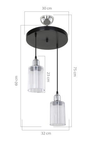 ارتفاع من السقف: 75 سم (PLAFONIER) + قاعدة (ARMS) طول: 60 سم (PLAFONIER) قطر: 30 سم إكسسيسوري غطاء + قاعدة