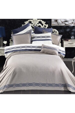 MNZ-Alaçatı بيج / زرقاء غطاء غطاء سرير مزدوج مجموعة NGO-6478