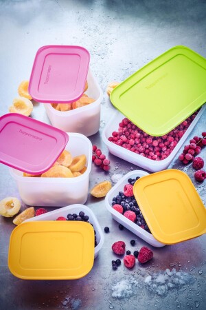 تم تصميم حاويات التجميد والتخزين الخاصة بنا في ألاسكا من أجل Tupperware بشكل حصري، وتحتوي على شكل مربع / مستدرد للمساعدة في توفير
