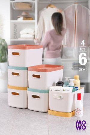 MNZ-Alegra 6 قطع 4 ليت كريم مربع منظمة متعددة الأغراض مع غطاء - صندوق تخزين ديكوراتي