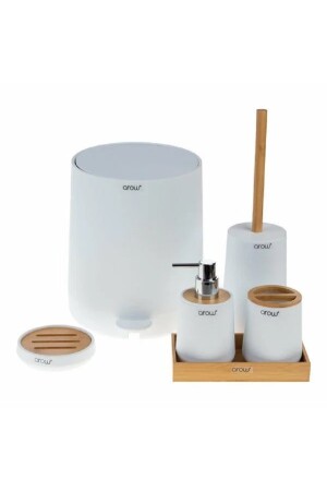 5 Parça Lucas Akrilik Bambu Banyo Seti Beyaz