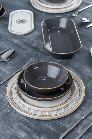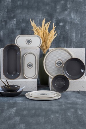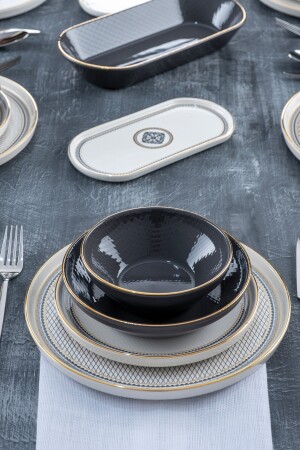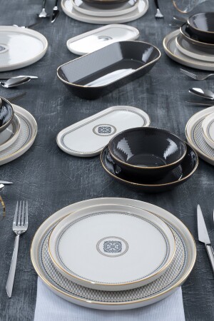 (MNZ-Matte) عشاء أسود / فطور مجموعة 30 قطعة لـ 6 أشخاص dmtaks202330