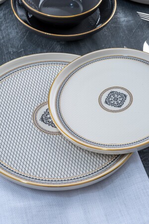 مجموعة العشاء من 27 قطعة من طراز MNZ-Alexxi محتويات المنتج: 6 أطباق (26 سم) ، 6 أطباق كعك (20 سم) ، 6 أطباق عميقة