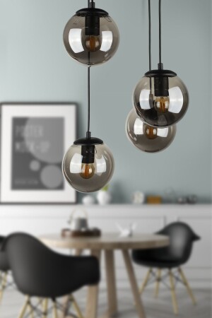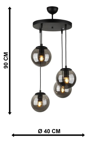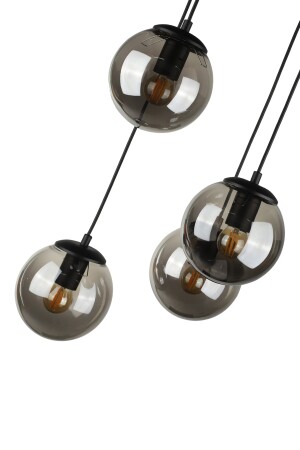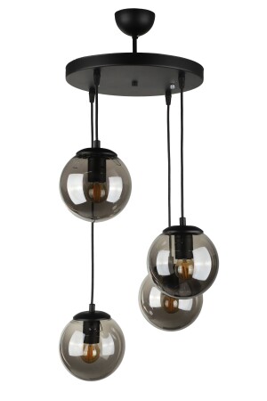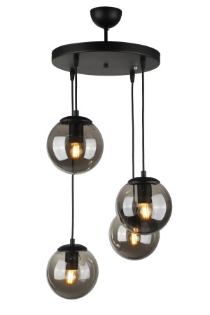 Pare Model Modern Spor Siyah 4'lu Glop Füme Camlı Avize