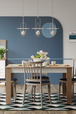 (MNZ-Alvin Sabit) غرفة المعيشة لـ6 أشخاص و طاولة الطعام في المطبخ - (Atlantic Pine)