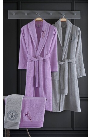 MNZ-Alya الحزام المصنوع من القطن 4 قطع عائلية ملابس حمام مجموعة ليلك I رمادي