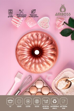 MNZ-Amboss Alya Casting Cake Mold مضاد للنيران غير القابض 26 سم - الوردي Alya 26 سم مضاد للنيران كيك مولد - مضاد للنيران غير القاب