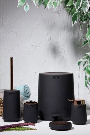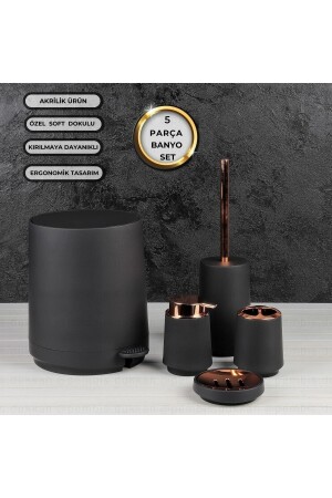 5 Parça Lucas Akrilik Bambu Banyo Seti Siyah