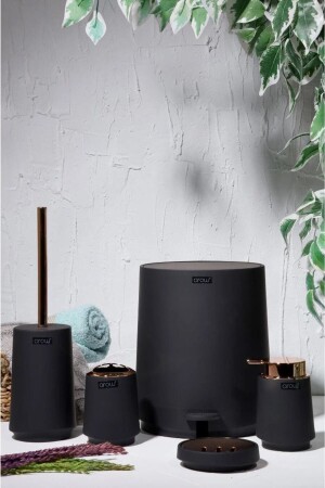 5 Parça Lenox Akrilik Bambu Banyo Seti Siyah