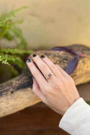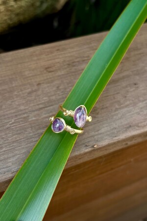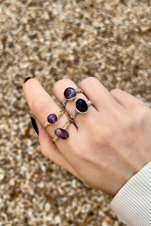 حلقة مصنوعة يدويًا مع حجر أميثيث طبيعي تتواجد الأحجار الطبيعية مع تفاصيل مطلية ذهبية لإنشاء حلقة لامعة. يتناسب هذا الحلقة المص
