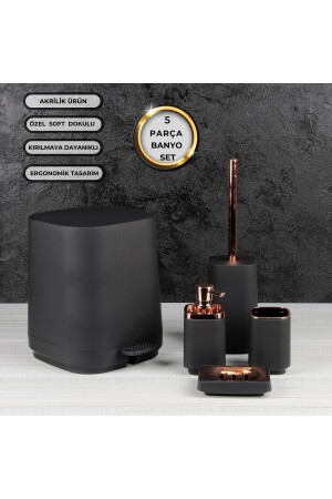 5 Parça Lenox Akrilik Bambu Banyo Seti Siyah