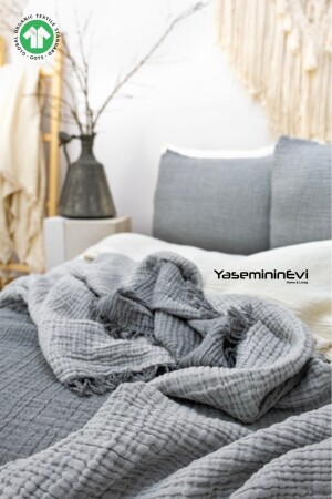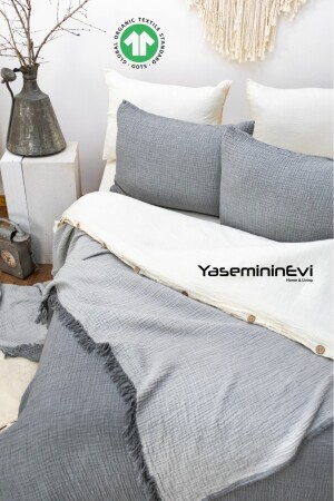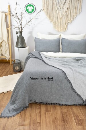 MNZ-Anthracite مزدوجة - لون الرمادي 4 طبقة مسلين غطاء السرير / 2 وسادة الحجري