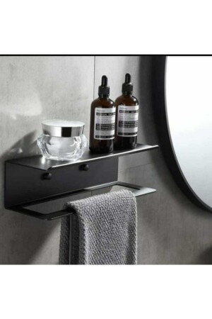 MNZ-Antory ورقة معدنية حامل منشفة سوداء مع رف Ar3hv0011krm-T