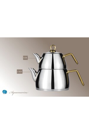 MNZ-Aquamarine متوسط الحجم الذهبية الصلب المقبض على علبة الشاي Aqa-4622