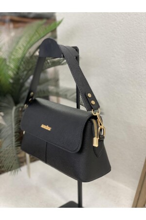 Kadın Siyah Çapraz Ayarlı Askılı Klinkır Kumaş Postacı Omuz Çantası