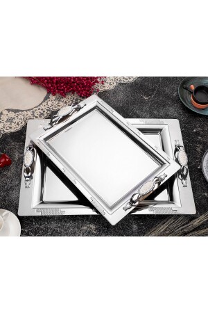 Lüx Kare Kelebek Aksesuarlı Paslanmaz Çelik 6’lı Gümüş Kahve, Çay, Dekoratif Sunum Servis Tepsisi MZKBK667