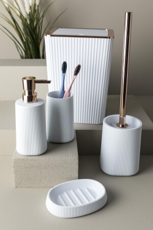 5 Parça Lucas Akrilik Bambu Banyo Seti Beyaz