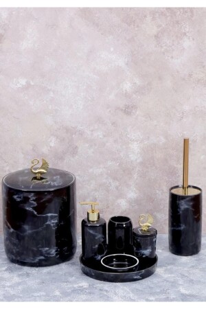 5 Parça Lucas Akrilik Bambu Banyo Seti Siyah