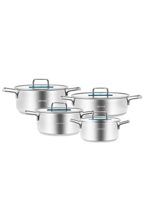 MNZ-Karaca Arya 8 قطعة حاوية الطهي الصلبة مجموعة مجموعة الأزرق محتوى البندق العميق (18 سم) + الغطاء البندق العميق (20 سم) + الغط