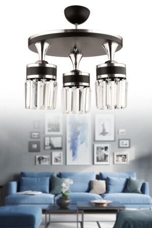 مكونات منتج MNZ اسم المنتج: ASLI BLACK 3-piece PLAFONIER CHROME GOLDED LUXURY مودرن شاندليير بلب لامب نوع 3