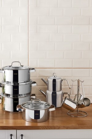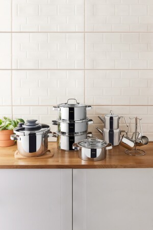 م.ن.ز-إمسان أستيريون 17 قطعة فولاذ طازجة المادة: 304 فولاذ 20 سم خزنة عميقة (2.6 لتر) 22 سم خزنة عم
