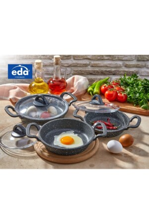 MNZ-ESSENSO 6-piece Granite PAN SET مع زجاج زجاجي زجاجي أسود 18-20-22 CM