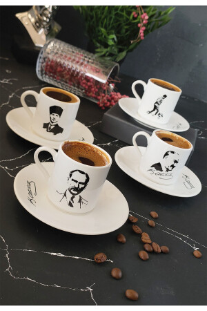 MNZ- لدينا ريجنا المنزل Ata 8 قطعة كوب قهوة مجموعة هي ل 4 أشخاص. الحزمة تشمل 4 كوبات نمط Ata و 4 صحن مع توقيع Ata. حجم: 75