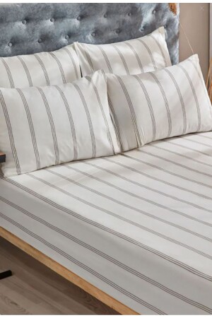 Pamuk Saten Lastikli Çarşaf Takımı Çizgili Çift Kişilik Beyaz/renkli Otel Tipi Lüx Yastıklı