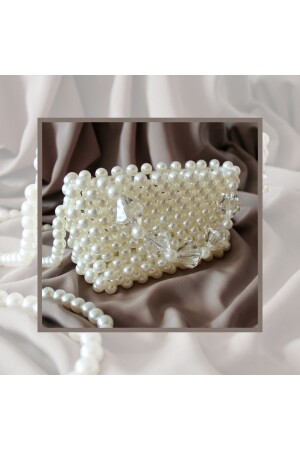 37cm Dekoratif Gümüş Kancalı Kısa İncili Cüzdan & Çanta Askısı