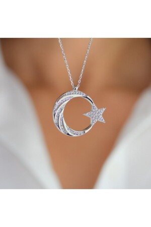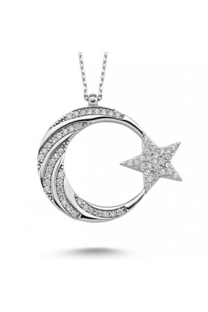 حجر MNZ-مستدد خيط الهلال والنجم الفضية عنق MY101800 الحلال والنجم الحجم: 2.5 سم مصنوع من 925 حجر فضي استسترلينغ مستعمل