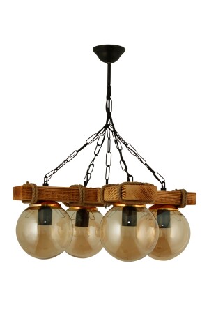 MNZ-Authentic Wooden Quadruple Yellow Globe Glass Candlelier SEF111