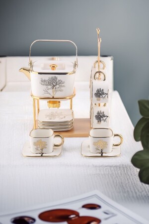 MNZ-Autumn Gold تفاصيل الفخامة الخزفية كوب الشاي والكوب القهوة مجموعة