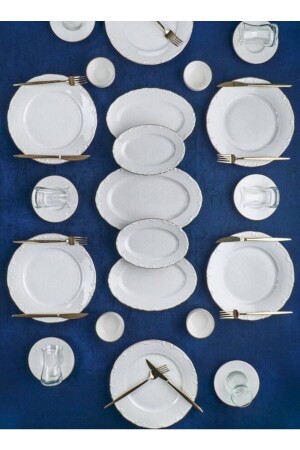 64 Parça 12 Kişilik Platin Modern Krem Kahvaltı Takımı