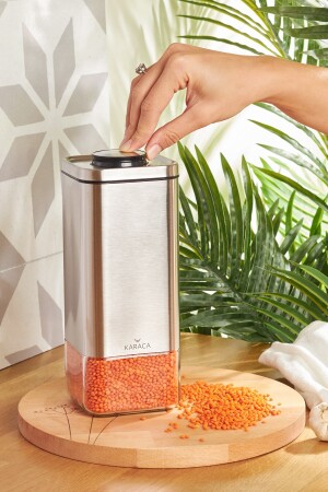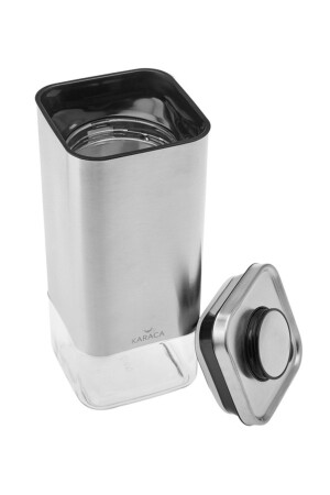 MNZ-Karaca Avangart Inox Vacuum Glass Jar Storage Container - L حجم: 1340 مل مواد: حجم المنتج الزجاجي: 13.5x13.5x26.6
