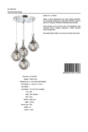 اسم المنتج: AVONNI AV-60161-4KT كروم مزروعة الشنابل الحديثة، E27، المعدن، الزجاج، 40 سم رمز المنتج: AV-1766-4KT رمز الع