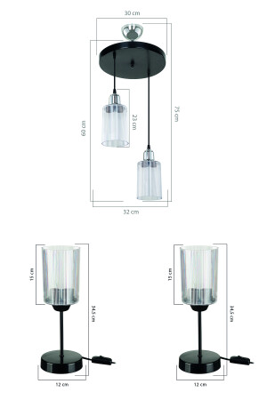 MNZ-Axel 2-piece Black/chrome غرفة نوم شمعة شمعة إضاءة ظل المصابيح مجموعة 4908-1