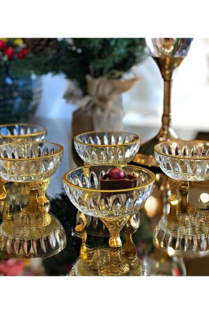 MNZ-6- Piece Glass Footed Golded Sugar Bowl قمر التركي لعبة الدهشة القمرة تقديم القمرة