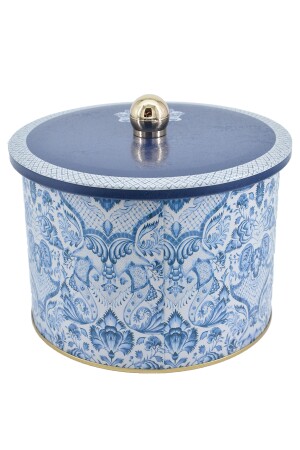 (MNZ-Azulejos) حاوية تخزين المعادن الدائرة ذات الطراز 14 سم، حاوية الطعام - صندوق المنظم 17.5 سم × 13 سم ER145
