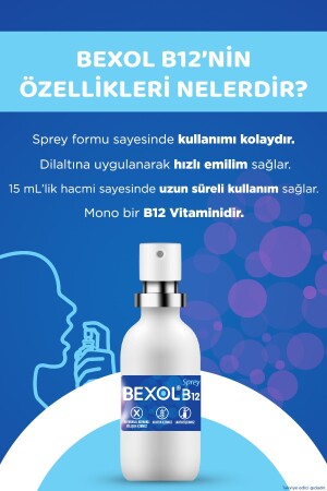 MNZ- BEXOL B12 رش فرعي اللسان - 15 مل مكمل غذائي يحتوي على فيتامين B12 8699546650088
