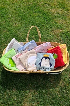 Bambu Balık Nakışlı Bebek Havlu Kundak Ve Kese Seti