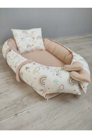 MNZ-Babynest، نمط التلال، مزيج بيج أصلي سرير الأطفال وسادة 1001
