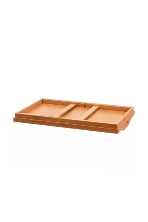 3 Lü (51- 37- 30 CM) Ahşap Kulplu Metal Tepsi Çay Tepsisi Kahve Tepsisi Sunum Tepsi Seti