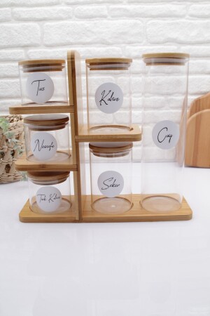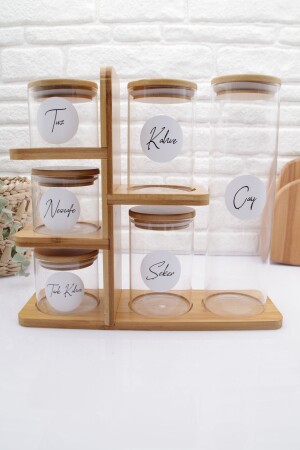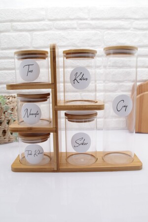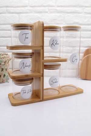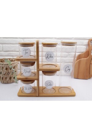 MNZ-Bamboo 6-piece Glass Jar Set مع موقف
