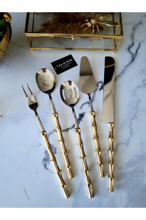 MNZ-Bamboo Look 5 Piece Steel Serving Set TR4279