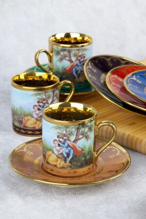 MNZ-Baroque تمثيلات اللون الذهبية الفورسلين كوب قهوة مجموعة 6 أشخاص 0108 Acar SYT-22-0108 كوب مجموعة