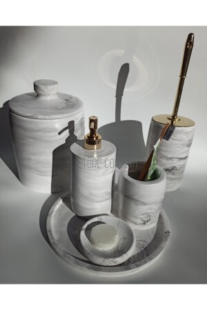 5 Parça Lucas Akrilik Bambu Banyo Seti Beyaz