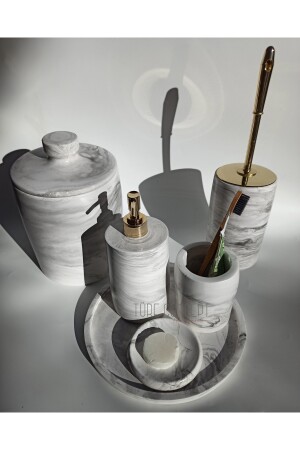 5 Parça Lucas Akrilik Bambu Banyo Seti Gri