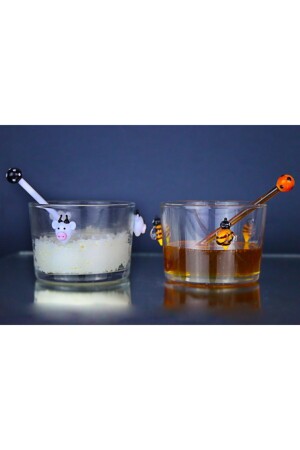 تم إنتاجه باستخدام تقنية تشكيل الزجاج النفطي. يتم إرساله مع ملعقة عسل العسل الزجاجية المصنوعة يدوياً. إنها وعاء بدون غطاء.
